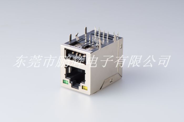 RJ45+USB全包带灯无弹直通系列,不带滤波器,开口朝上(RB-017-W)